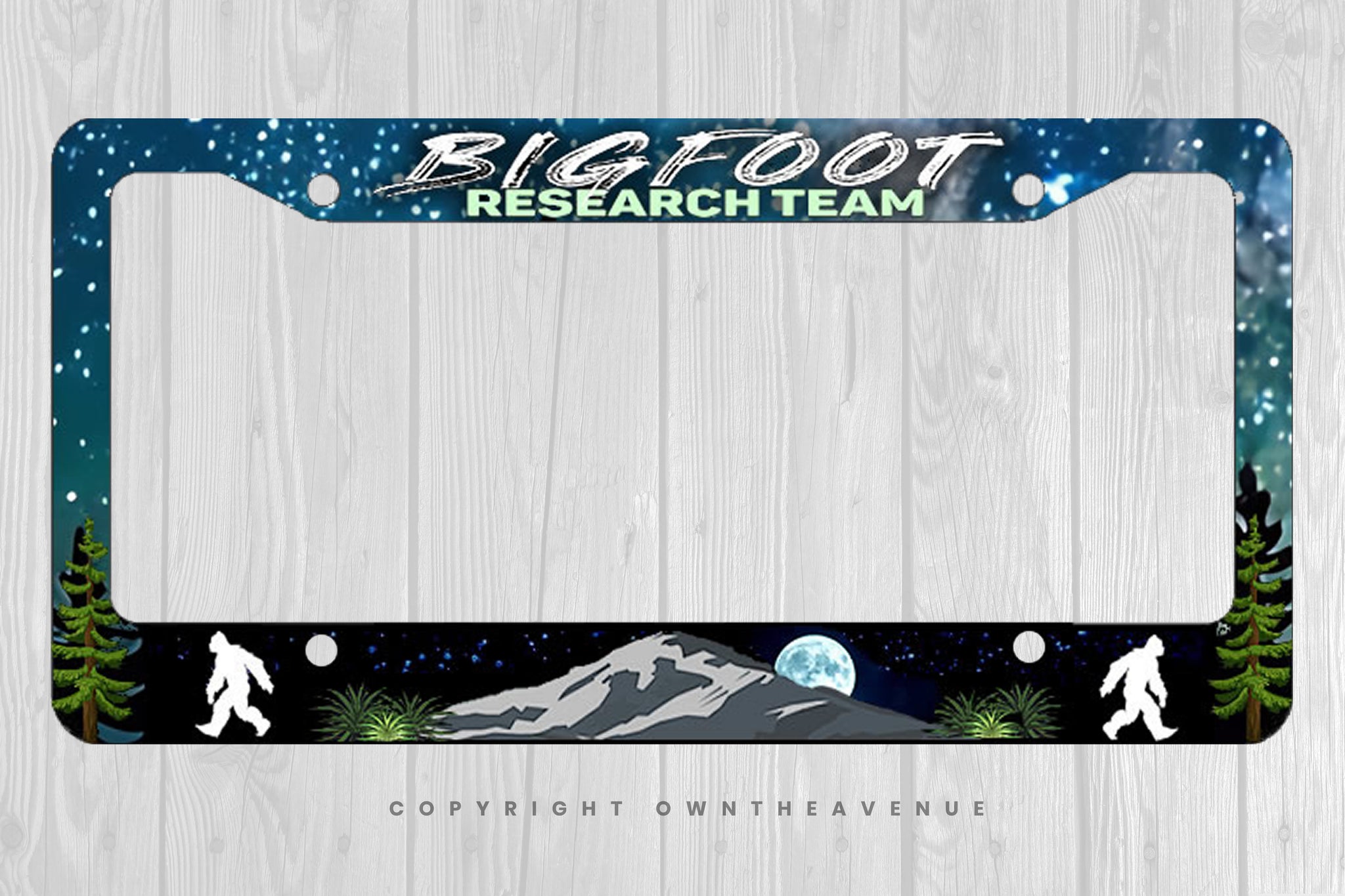 Bigfoot Research Team Forest Nature Joke Auto Metal Printed License Plate Frame