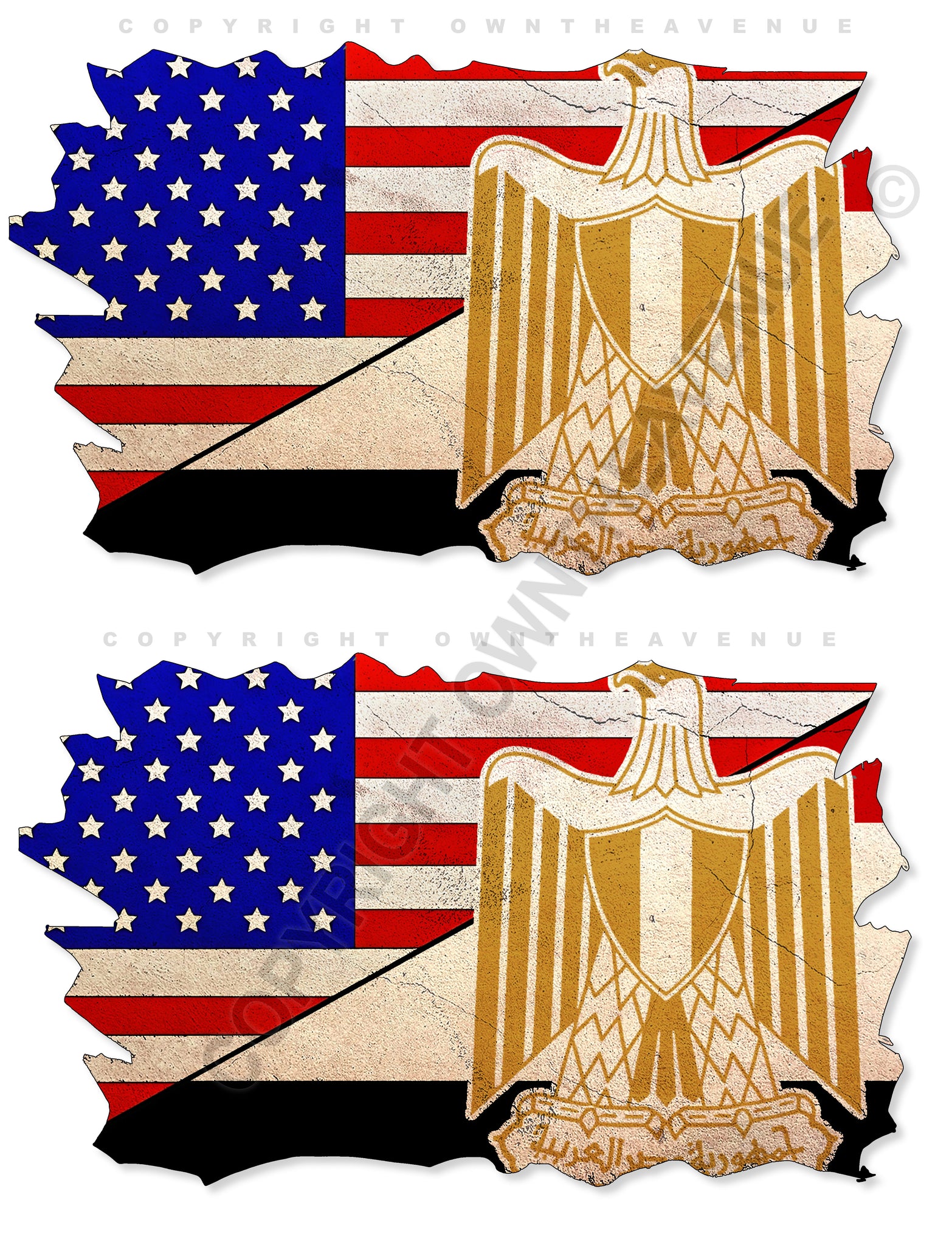 2Pcs Egyptian USA American Vintage Style Distressed Flags Vinyl Sticker Decals 3"