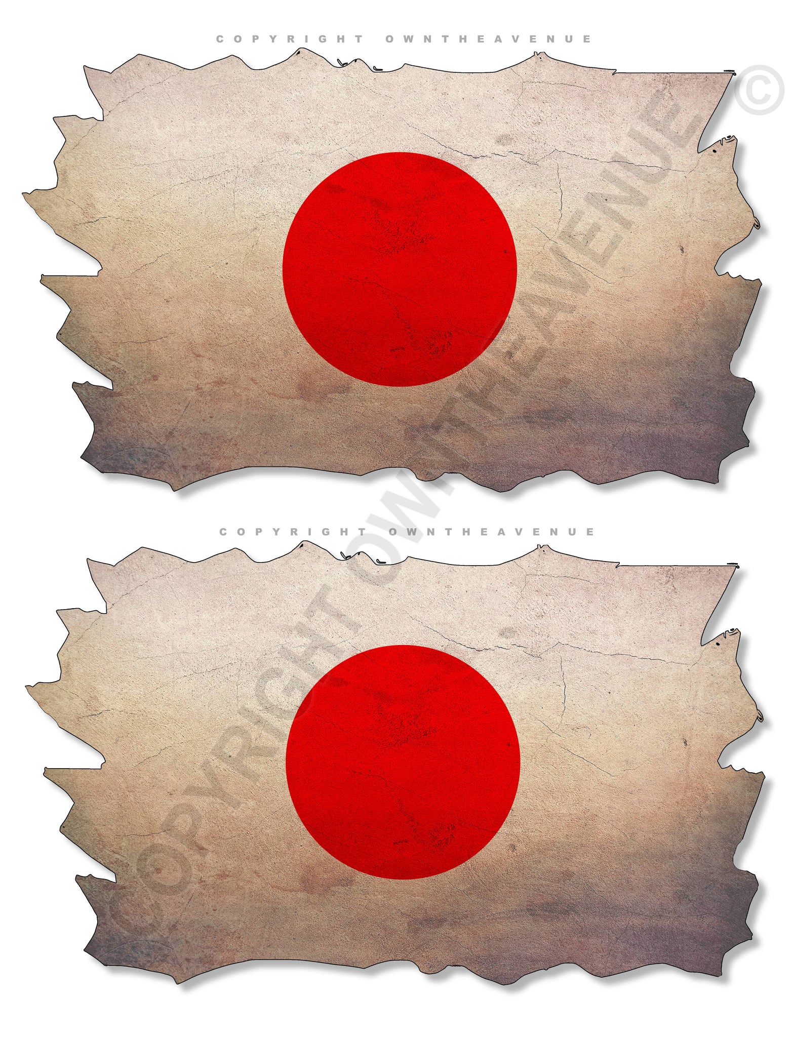 2Pcs Japan Japanese Vintage Style Distressed Flags Vinyl Sticker Decals 3"