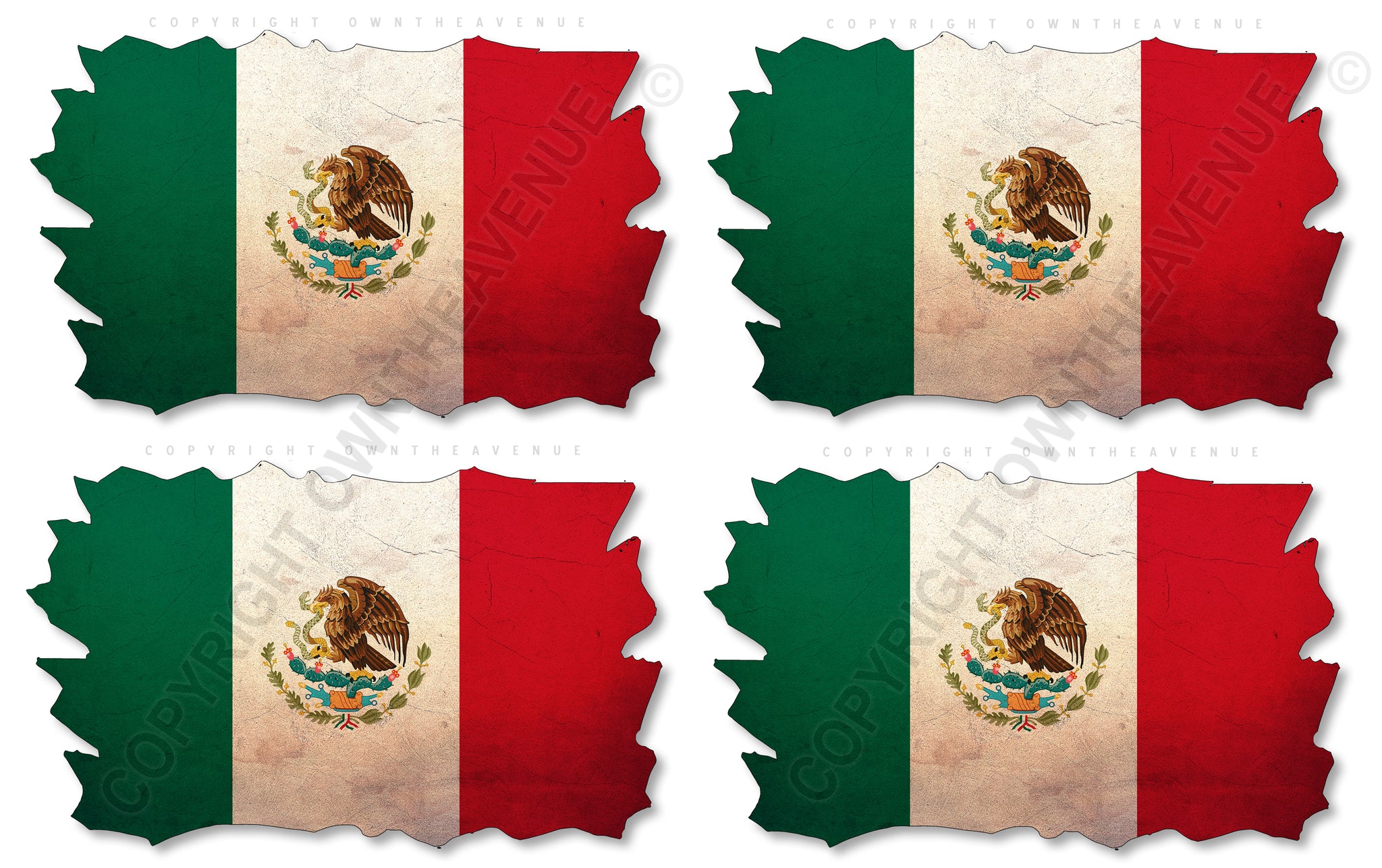 4Pcs Mexican Mexico Vintage Style Distressed Flags Vinyl Sticker Decals 3"