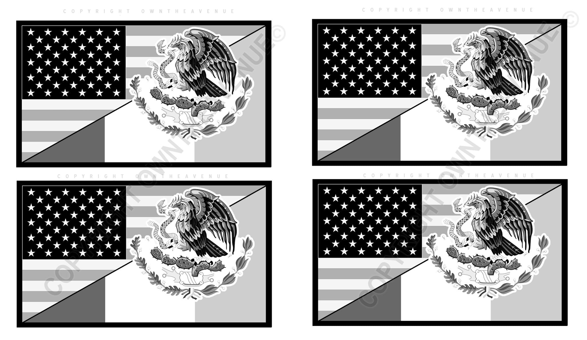 4Pcs Mexico Mexican USA American Subdued Flags Sticker Decals 3"