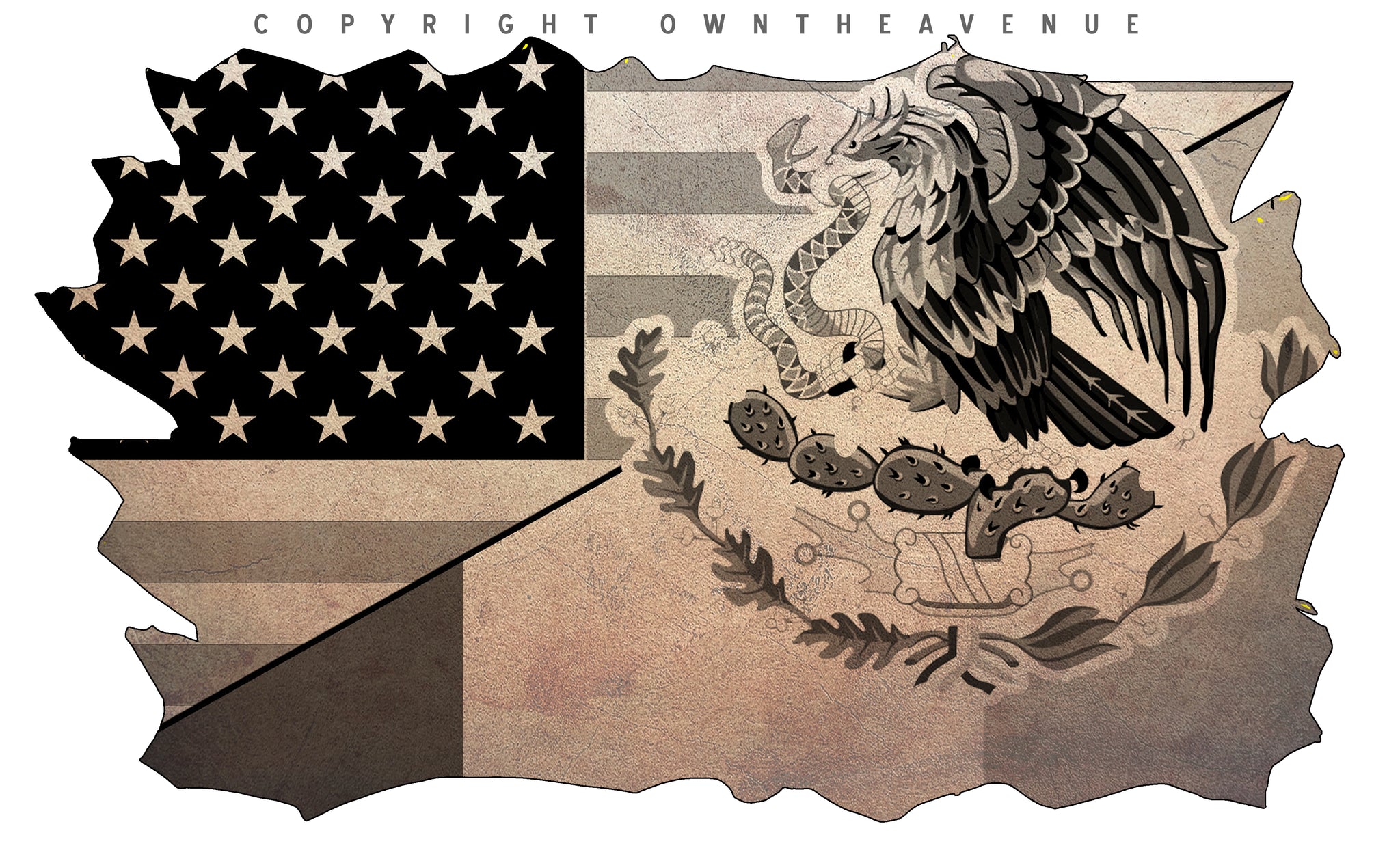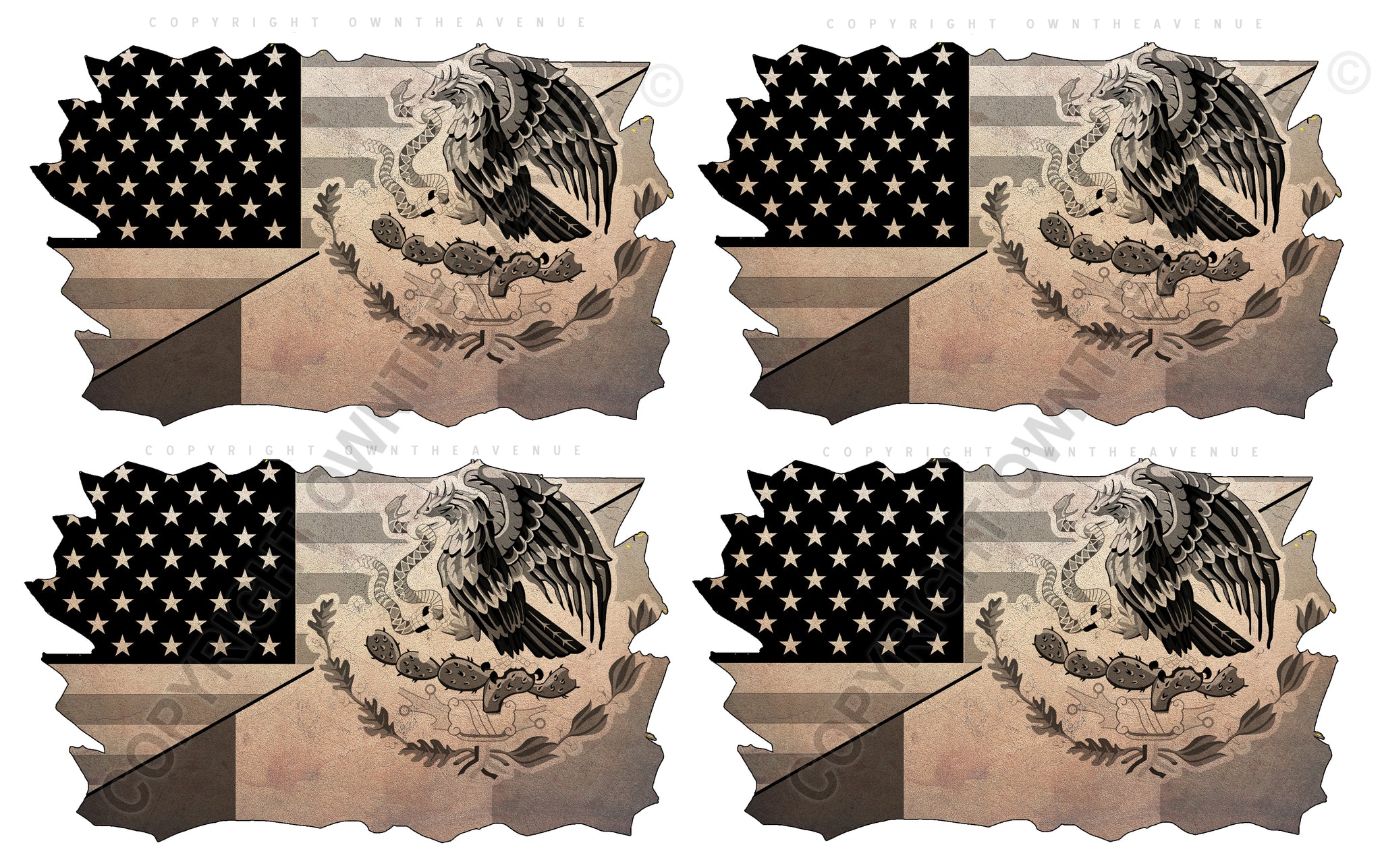 4Pcs Mexico USA American Vintage Subdued Distressed Flags Vinyl Sticker Decals 3"