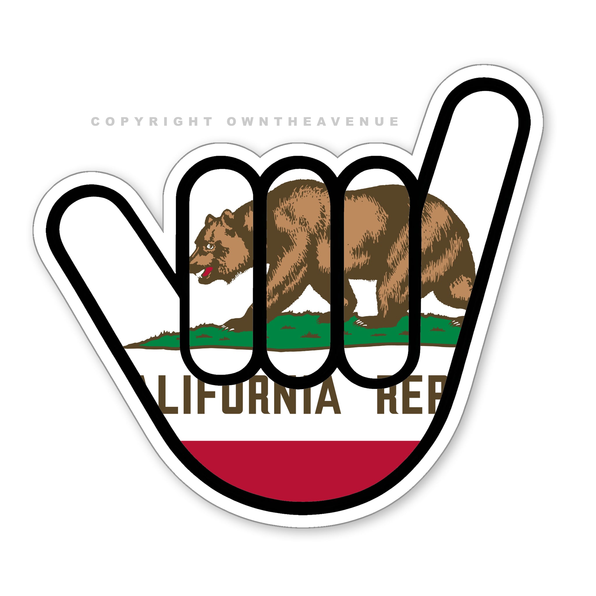 2Pcs Shaka Hang Loose California Cali Bear Flag Sticker V01 Bumper JDM Decal