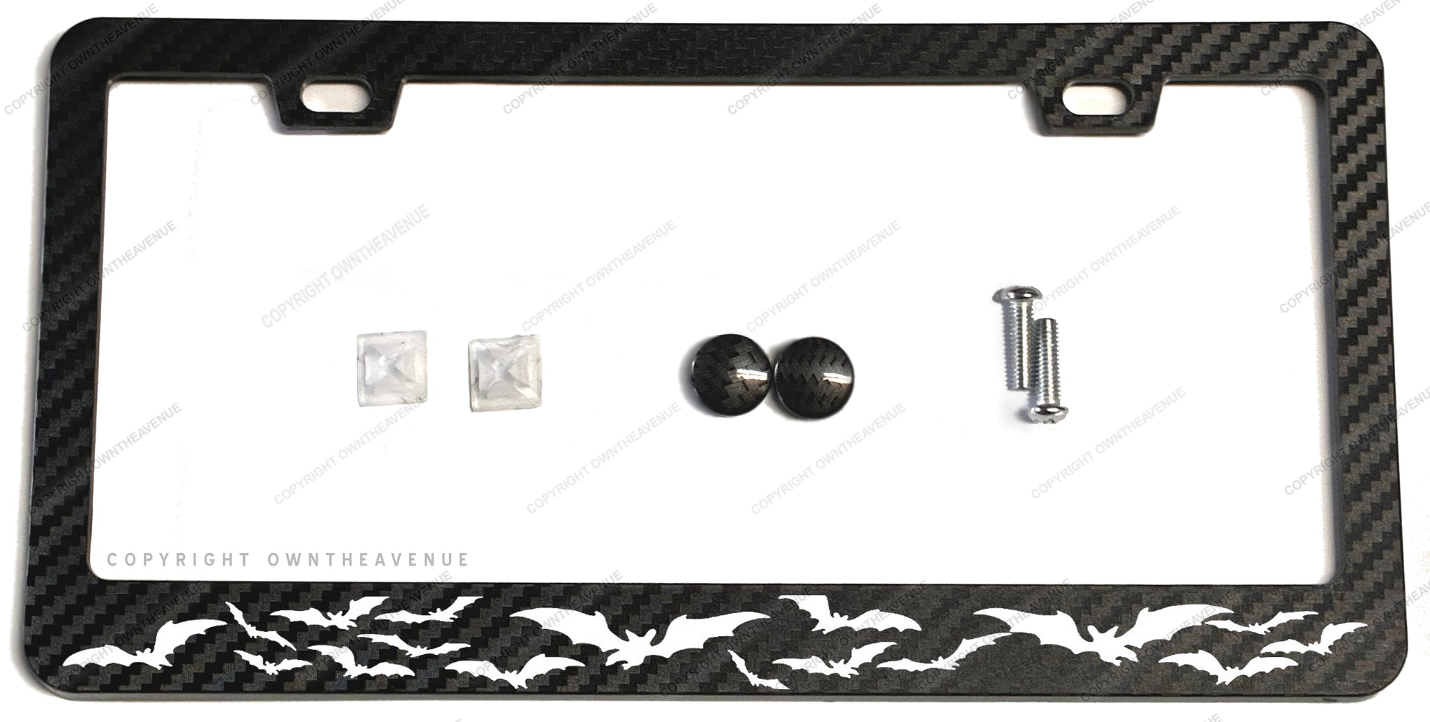 Bats Flying Goth Spooky Horror Racing Drifting Carbon Fiber License Plate Frame