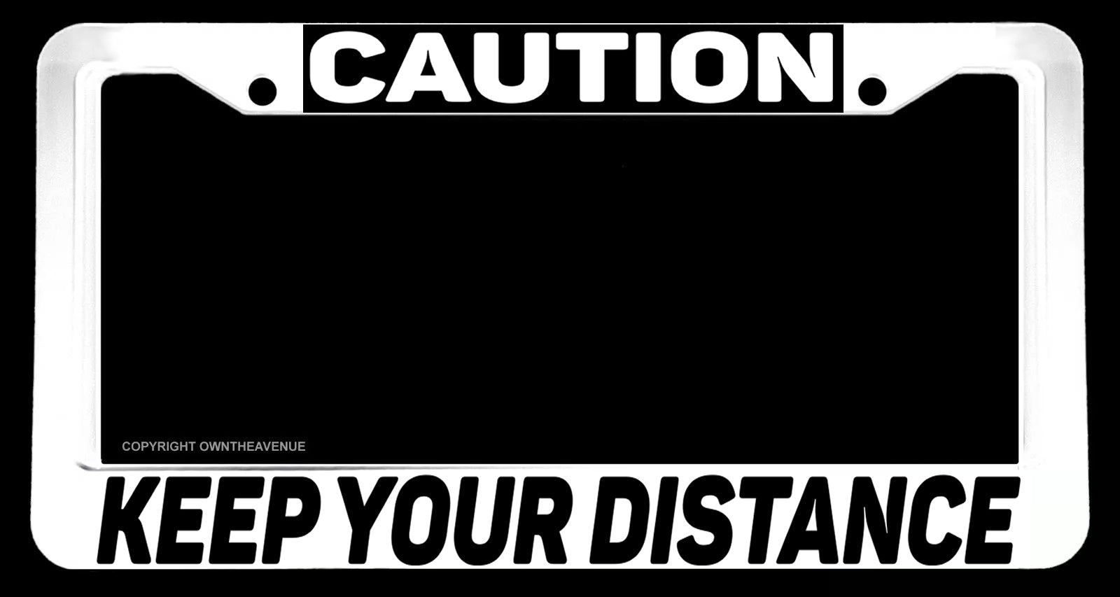 Caution Keep Your Distance Humor Joke Tailgating White License Plate Frame