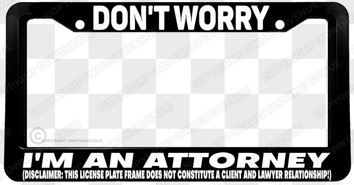 Don't Worry Attorney Funny Joke Gag Prank Black License Plate Frame