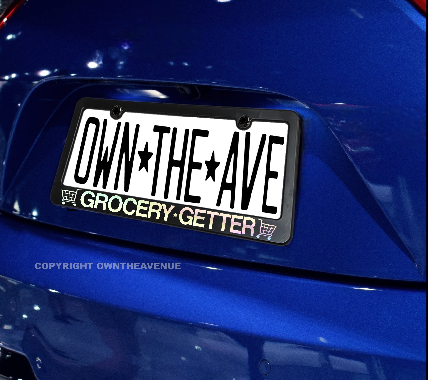 Grocery Getter JDM Humor Joke Holographic Oil Slick License Plate Frame