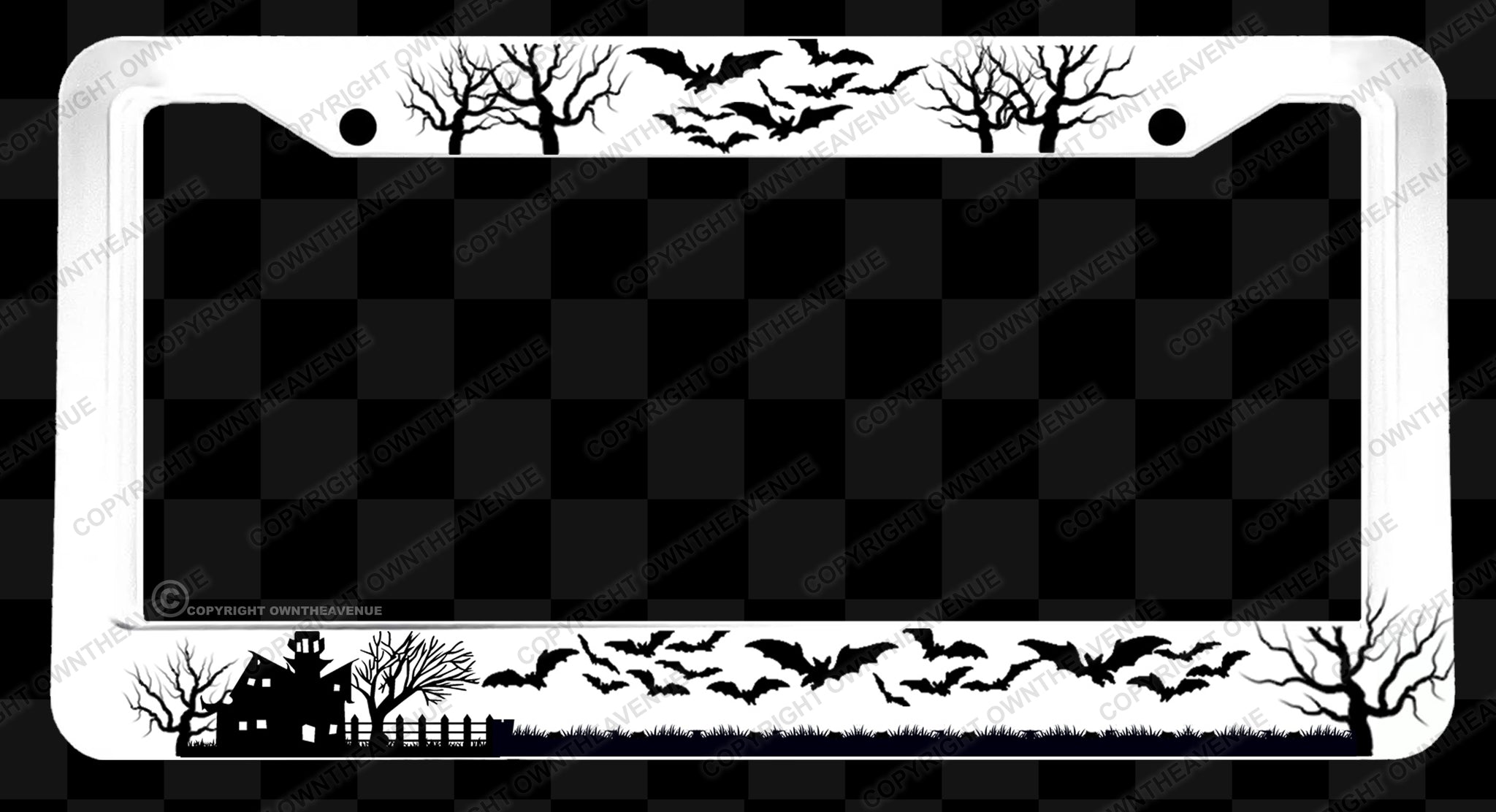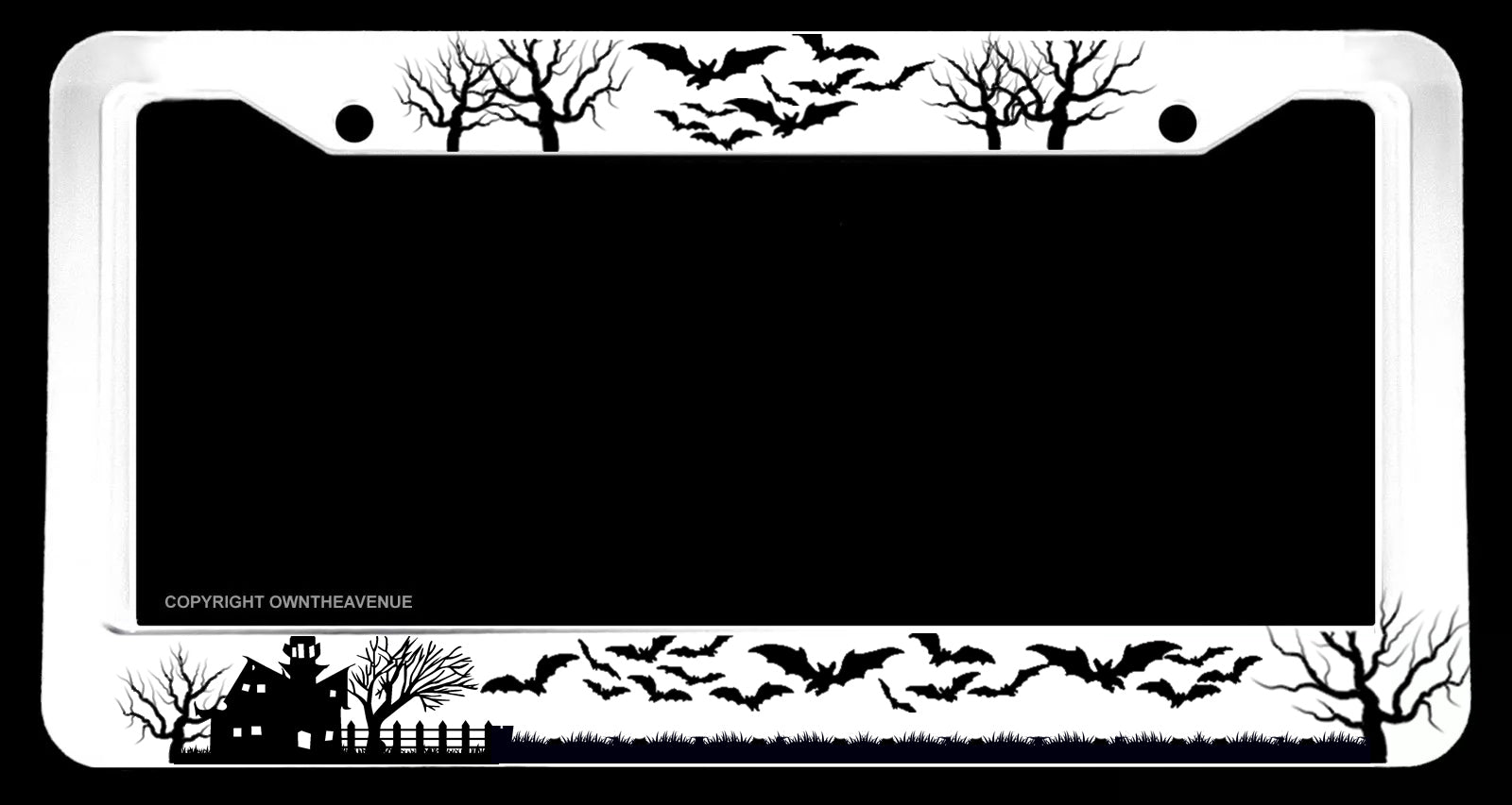 Haunted House Spooky Bats Gothic Goth White License Plate Frame