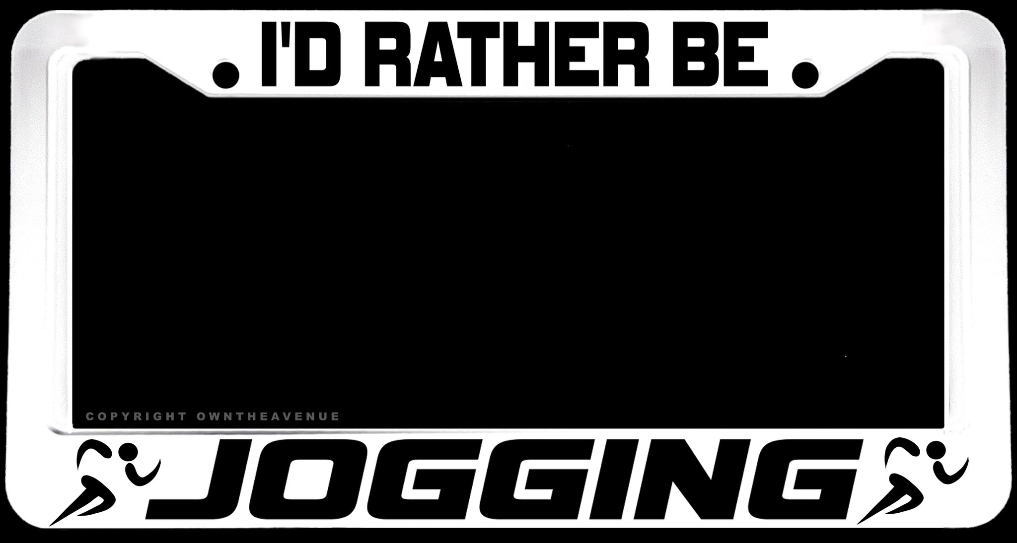 I'd Rather Be Jogging Gym Exercise White License Plate Frame