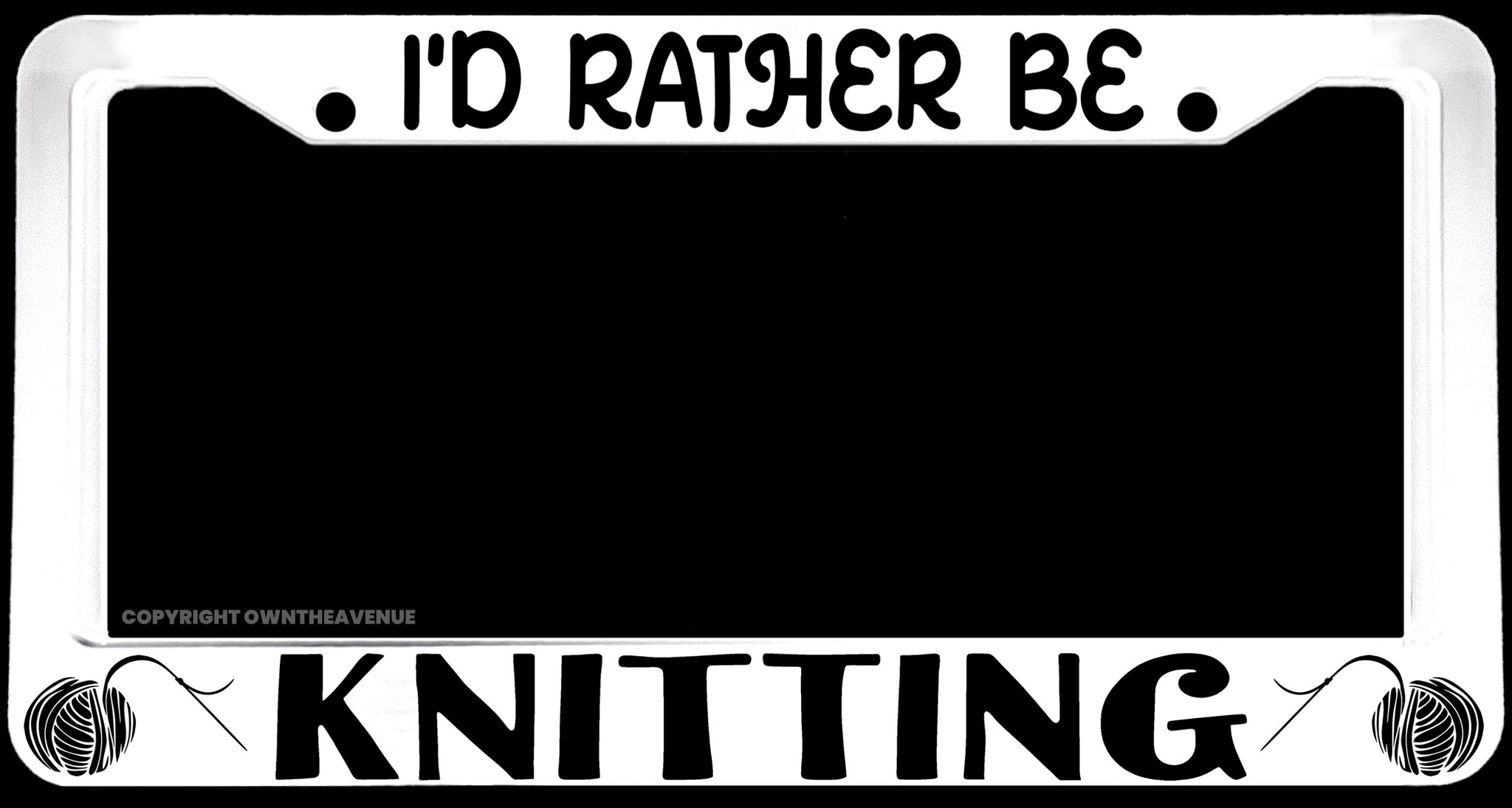I'd Rather Be Knitting Humor Quilting Sewing White License Plate Frame