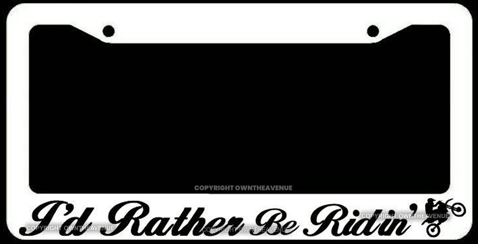 I'd Rather Be Ridin' Motocross Off Road 4x4 Dirt Bike Riding White License Plate Frame