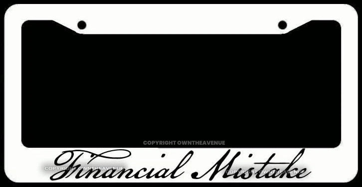 JDM Financial Mistake Tuner Racing Drifting Low White License Plate Frame