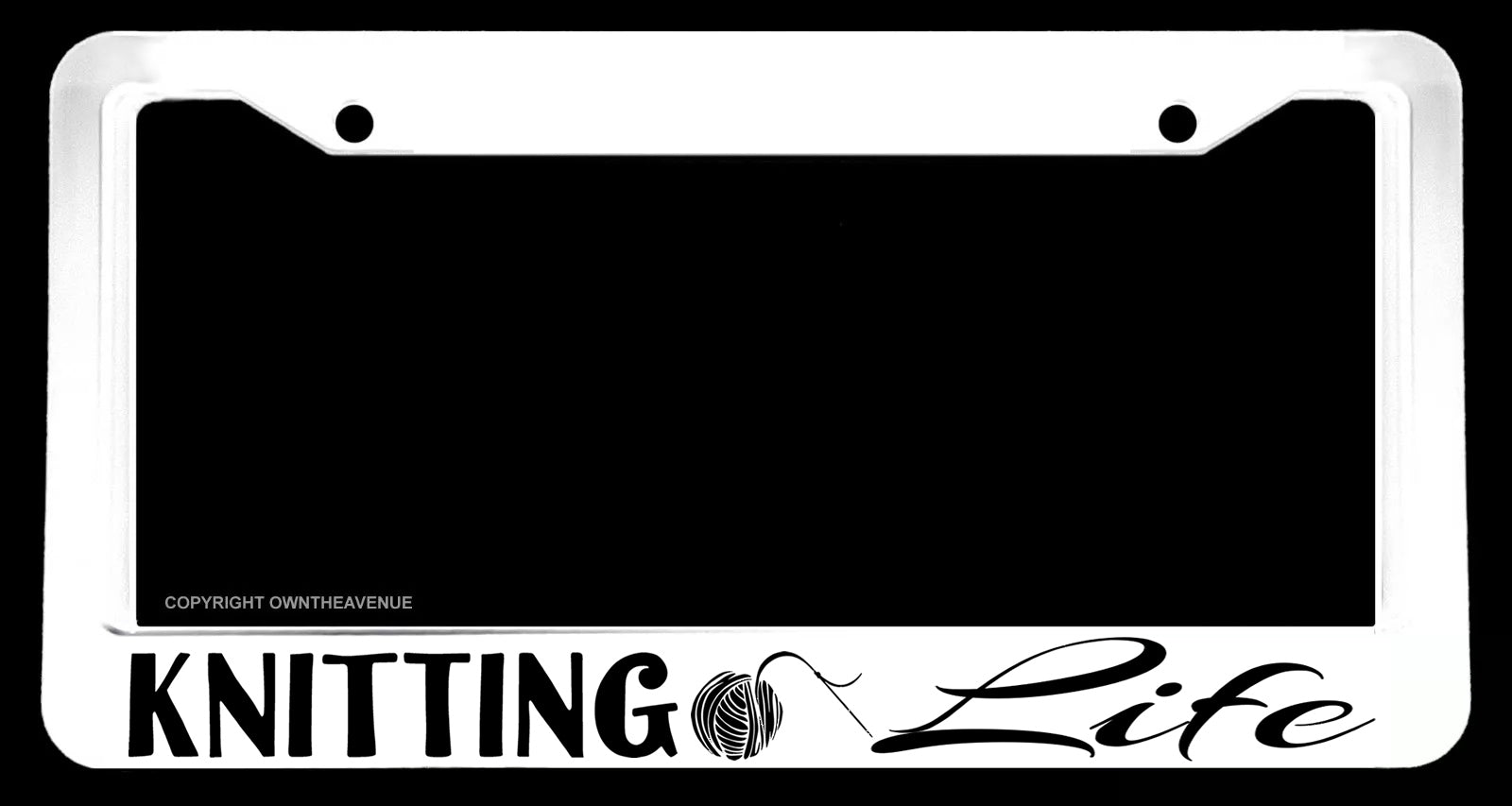 Knitting Life Humor Joke Quilting Sewing White License Plate Frame