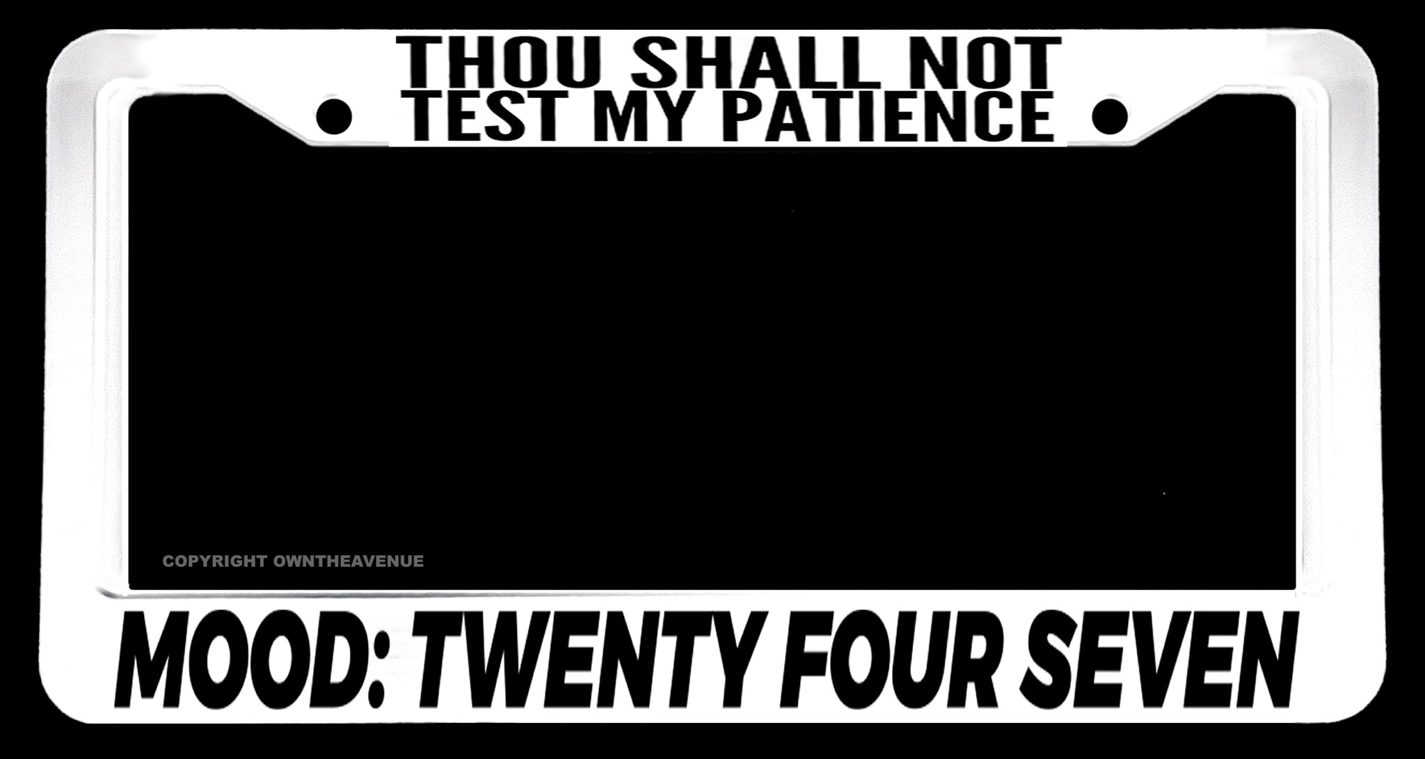 Thou Shall Not Test Me Funny Joke Humor White License Plate Frame