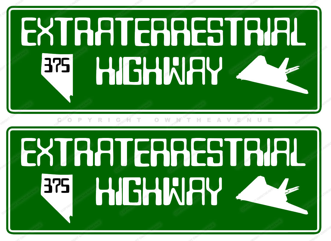 2Pcs Extraterrestrial Highway Route 375 Alien UFO Vinyl Sticker Decals 3"