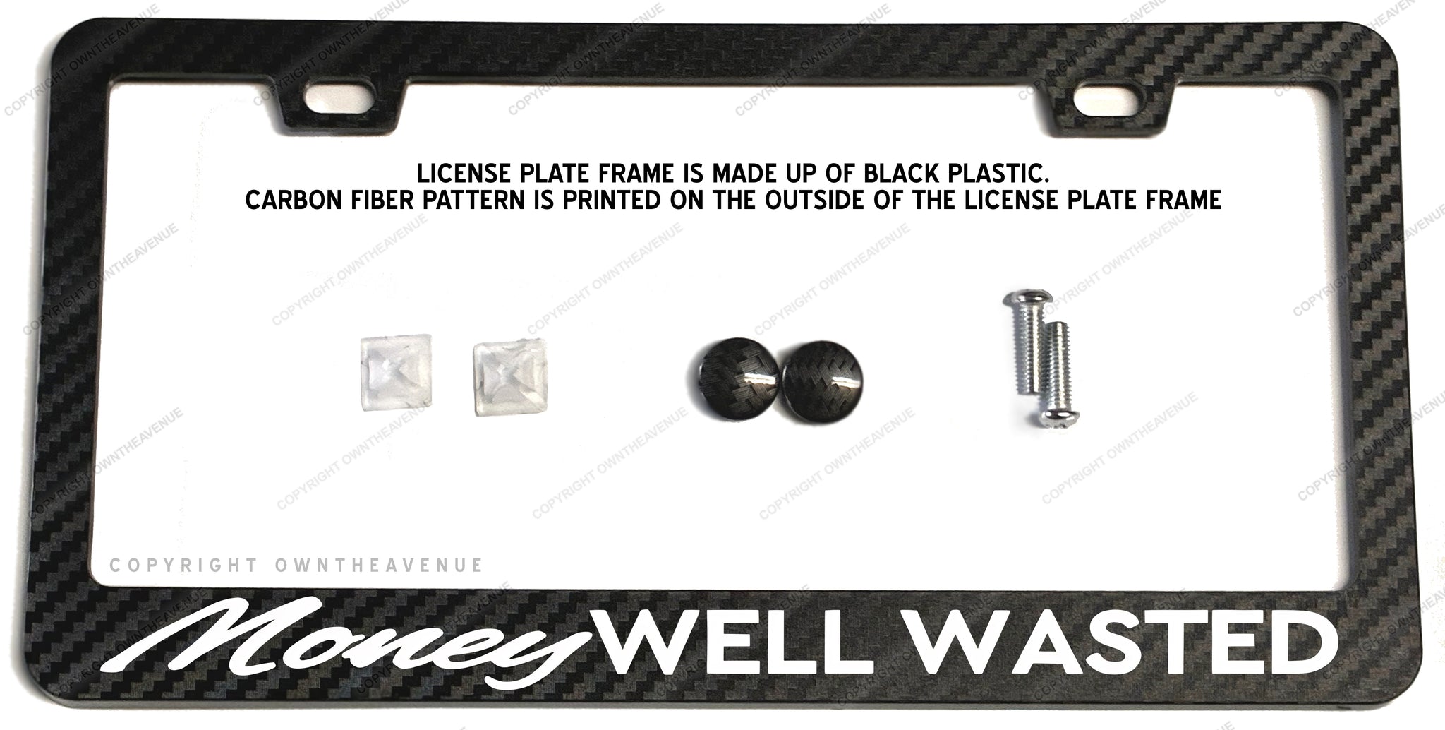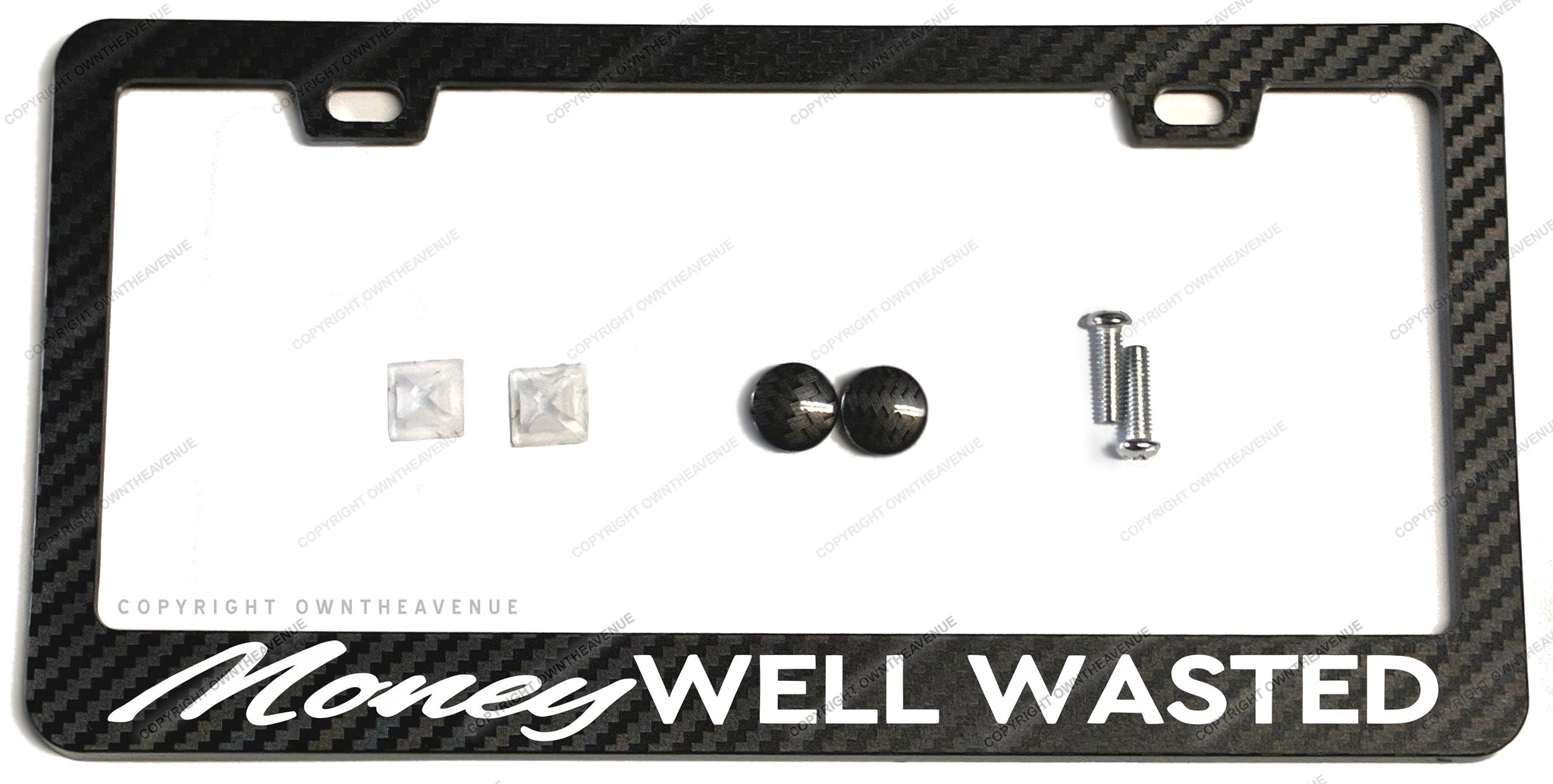 Money Well Wasted JDM Drift Race Humor Carbon Fiber License Plate Frame