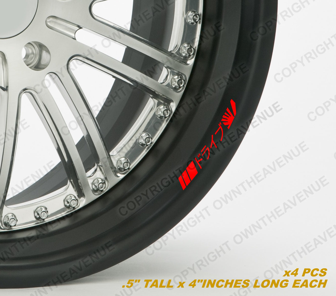 x4 Logo Style Red Decal For Rims JDM Kanji Japanese Rising Sun Sticker 4"