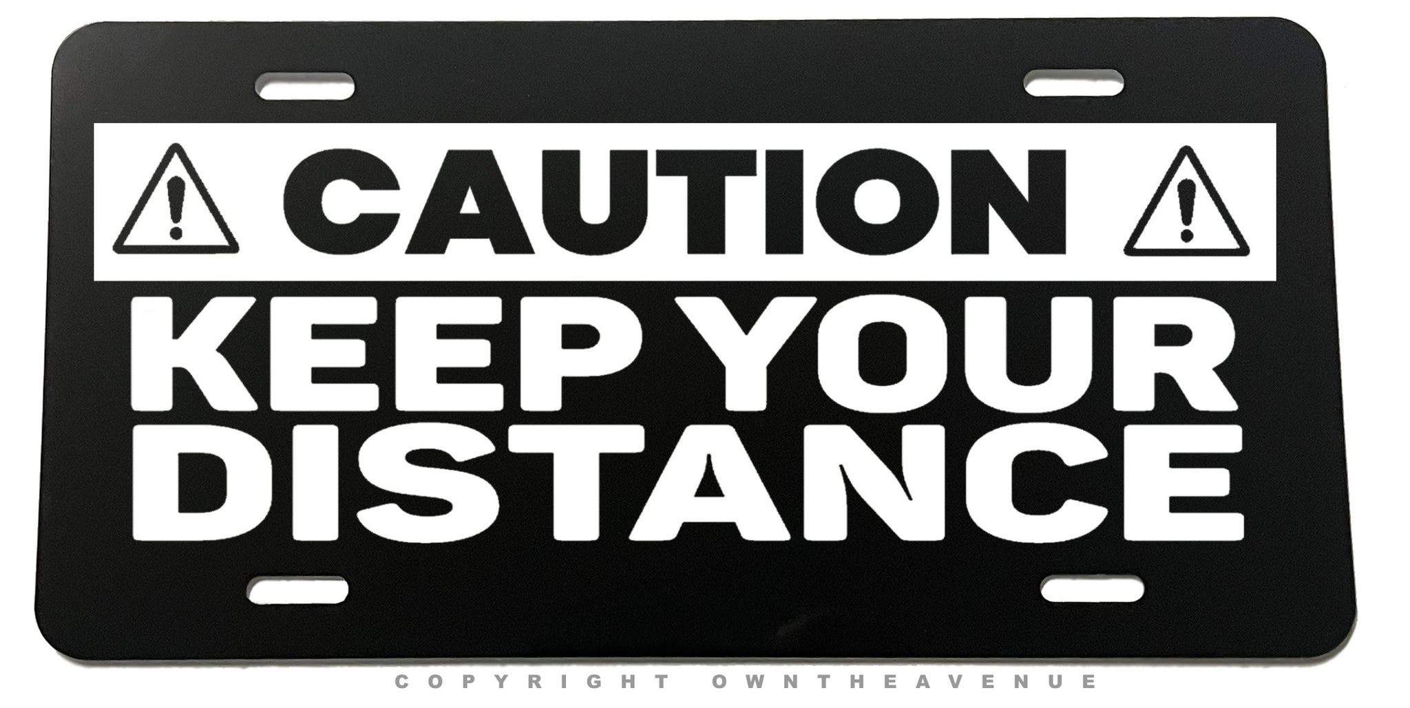 Caution Keep Your Distance Humor Joke Tailgating Metal License Plate