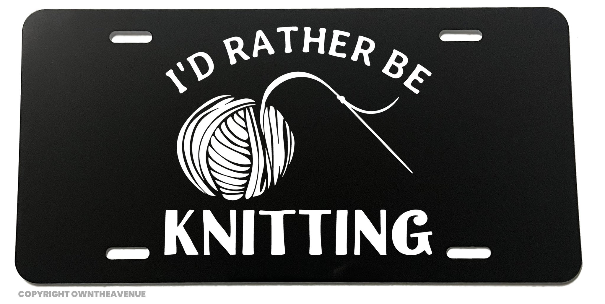 I'd Rather Be Knitting Humor Quilting Sewing Auto License Plate