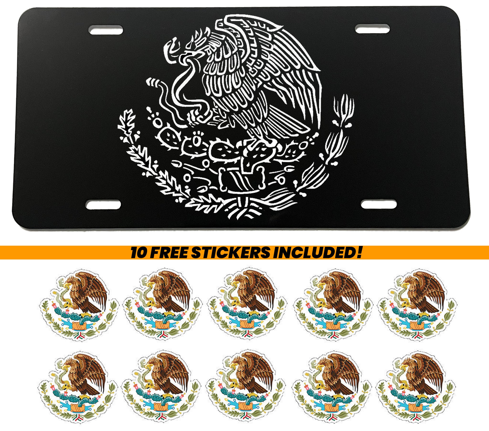 Mexico Mexican Coat of Arms Eagle Flag Auto Black Metal License Plate + Bonus