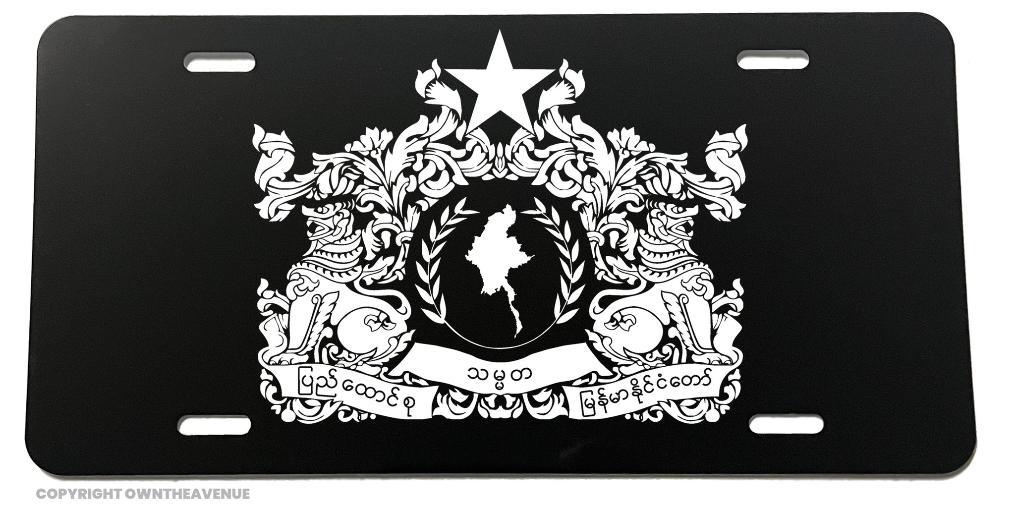 Myanmar Coat of Arms Flag Country Black Metal License Plate