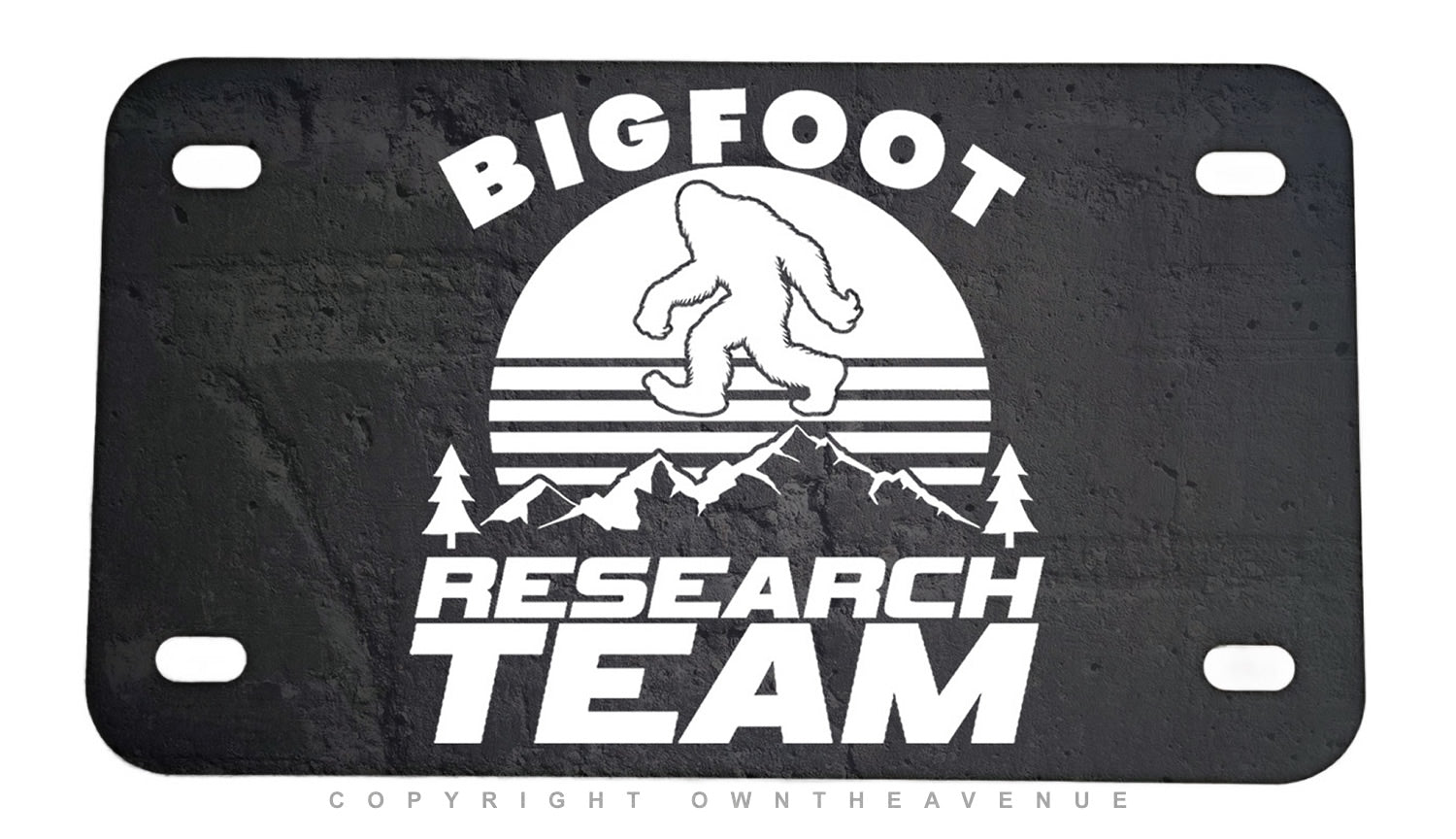 Bigfoot Research Team Synth Wave Style Motorcycle Metal License Plate