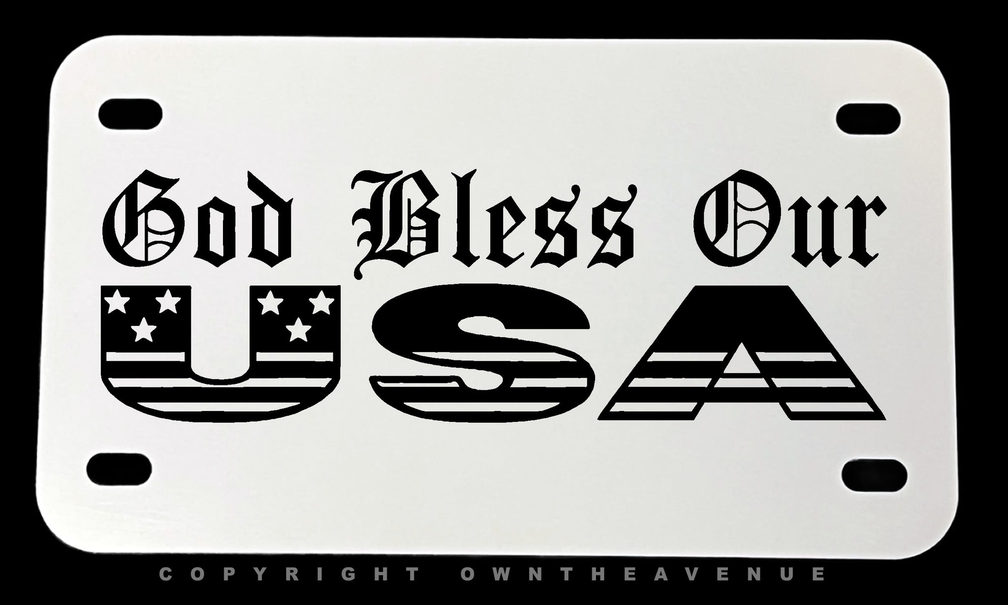 God Bless Our USA American Flag Motorcycle Metal License Plate
