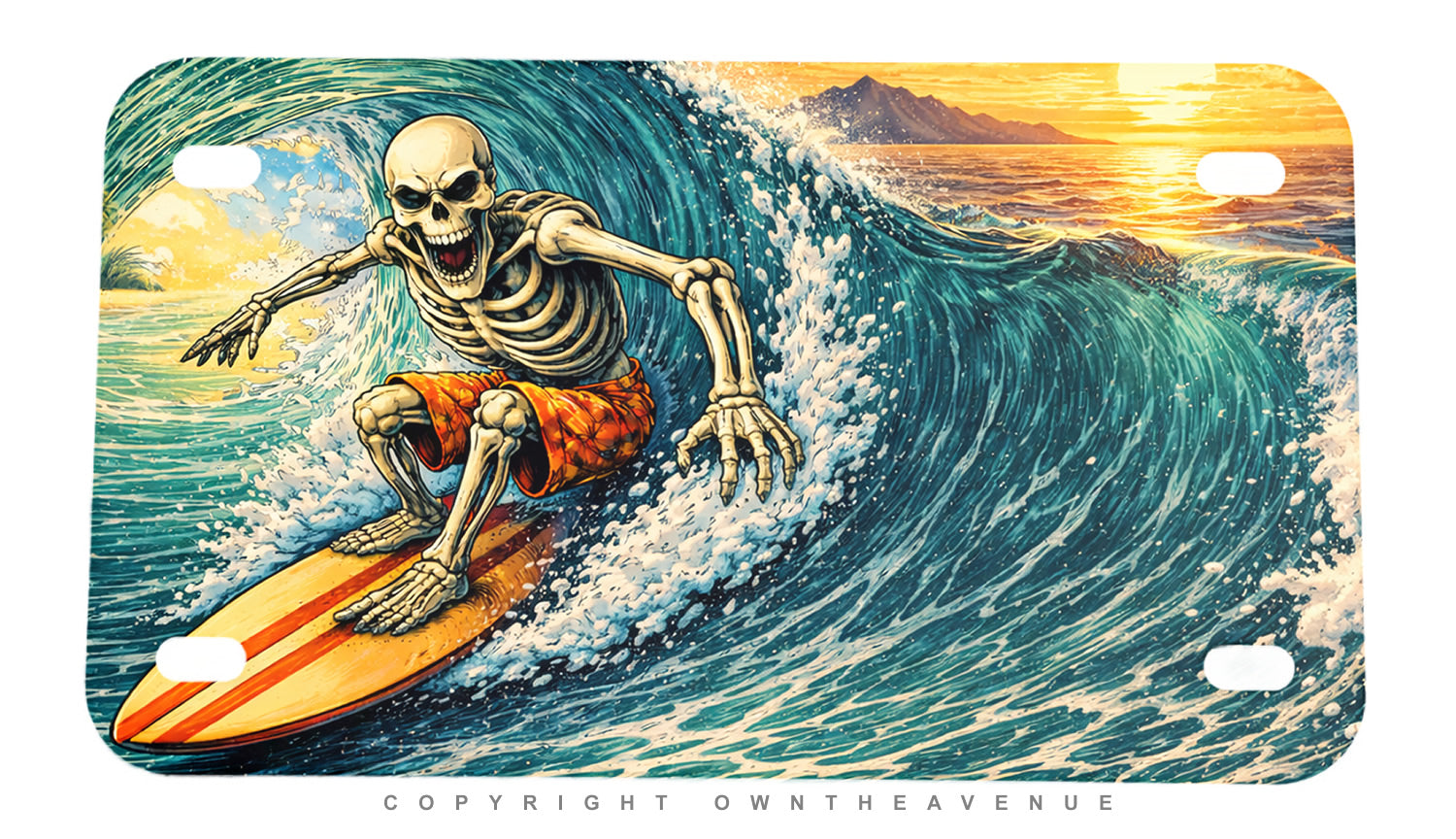 Surfing Waves Crashing Motorcycle Metal License Plate