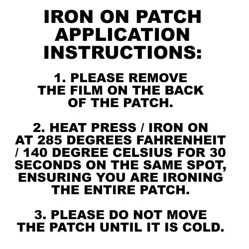 High quality, printed iron on patch, perfect for hats, hoodies, jackets, t shirts and similar types of apparel use.