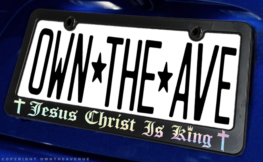 Jesus Christ Is King Christian Religious Oil Slick Hologram License Plate Frame