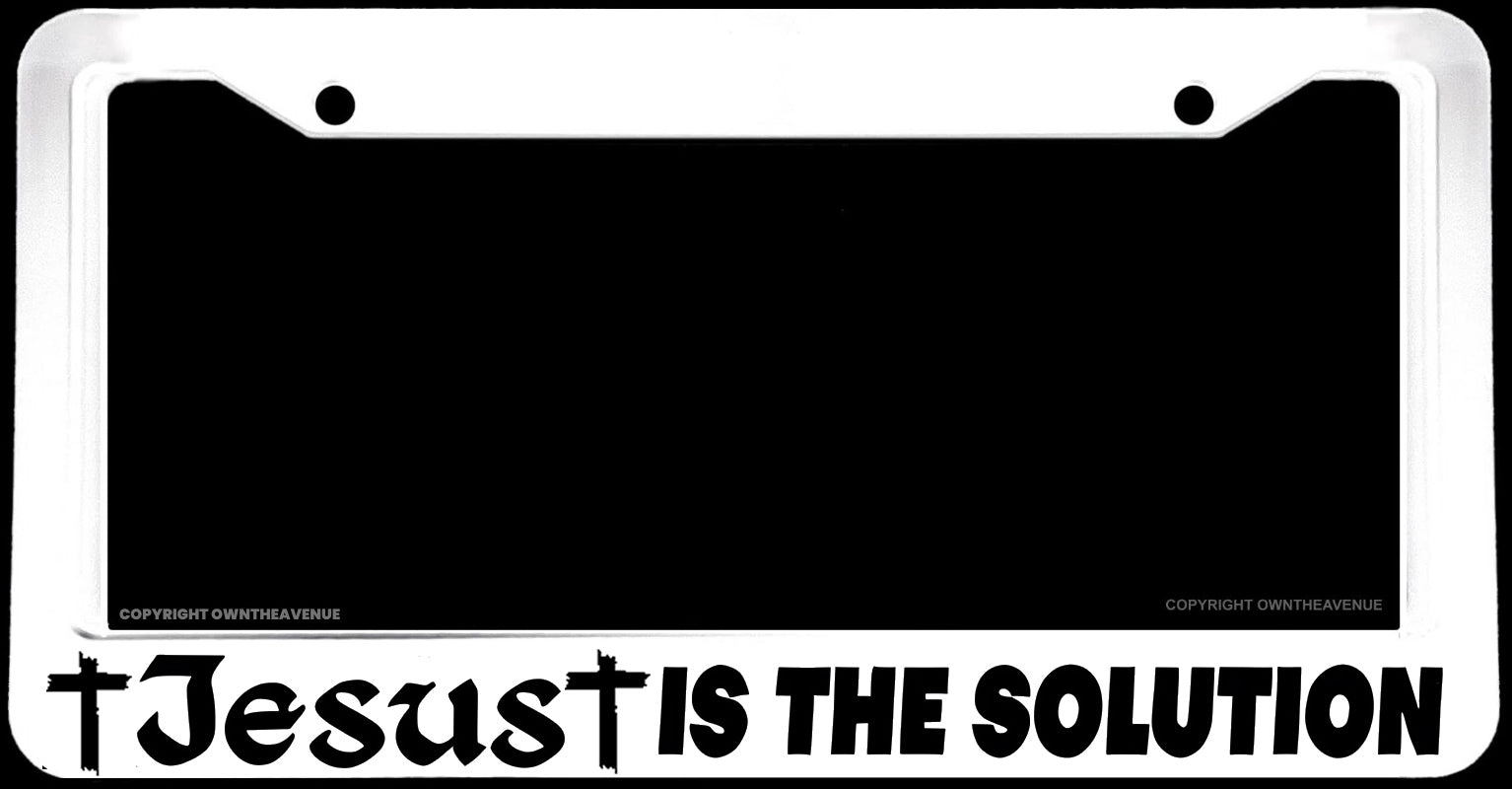 Jesus Is The Solution Christian Religious Christ White License Plate Frame