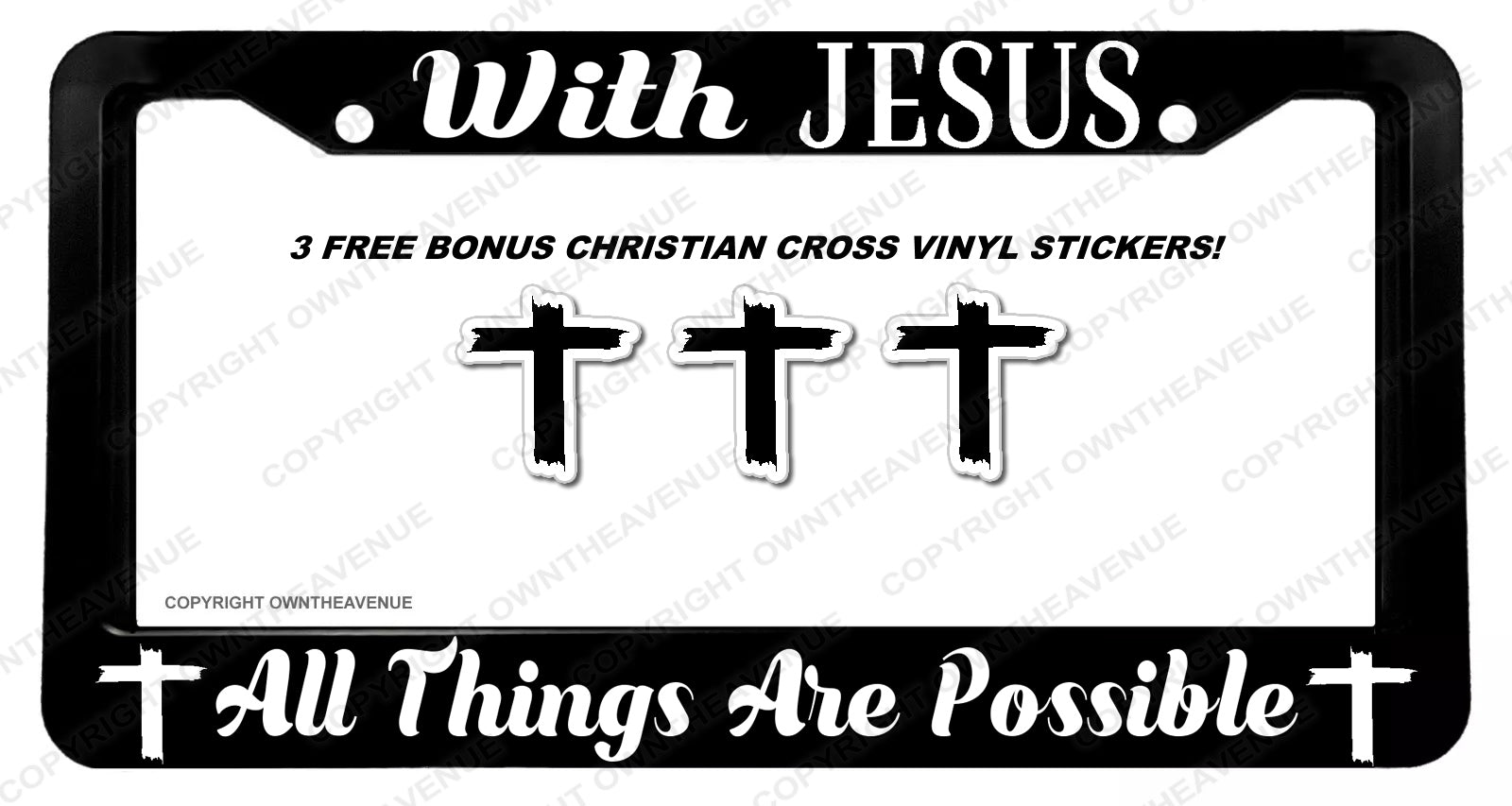 With Jesus All Things Are Possible Cross Auto V01 License Plate Frame