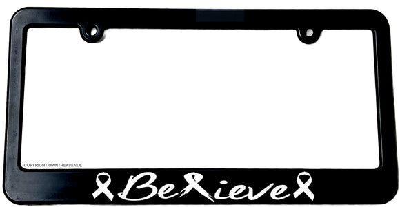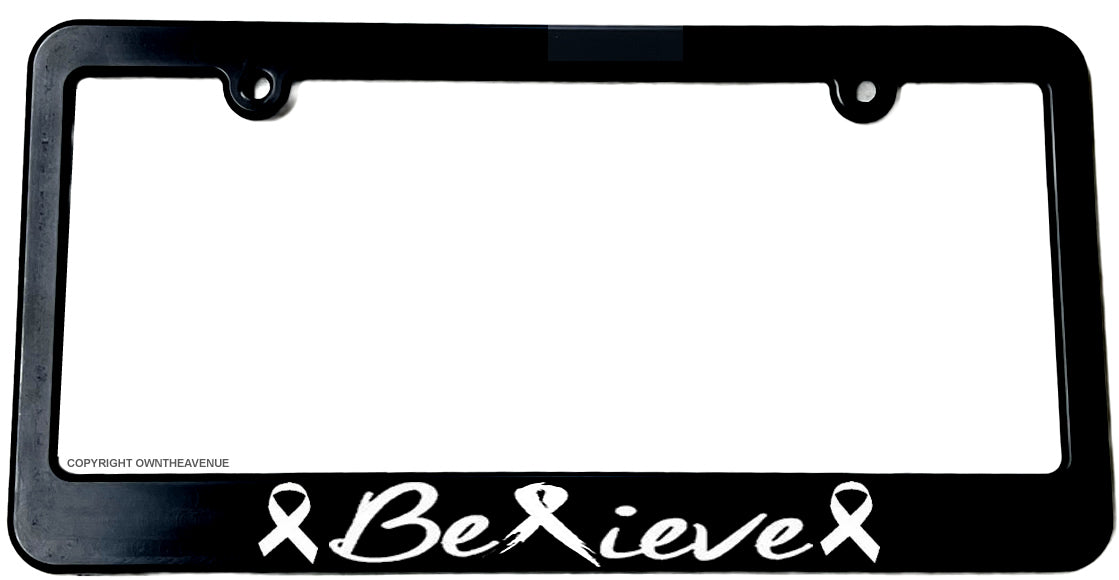 Believe White Ribbon Lung Cancer Awareness Slim License Plate Frame