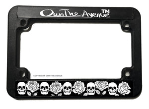 Biker Skull Floral Rugged Vintage Style Motorcycle License Plate Frame