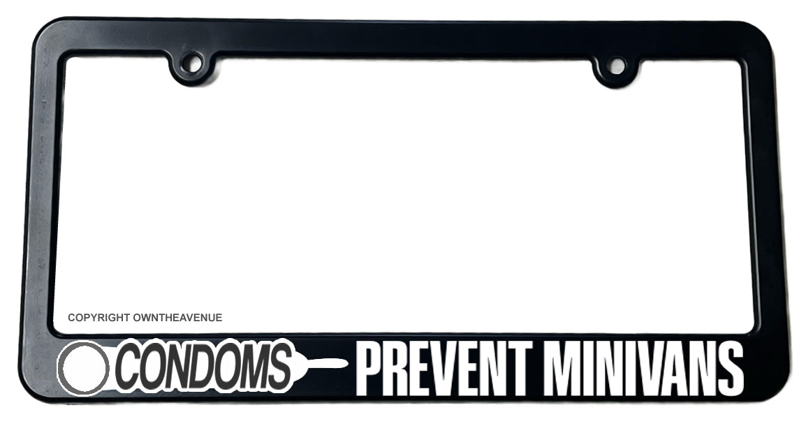 Condoms Prevent Minivans License Plate Frame - Funny JDM Slim Frame