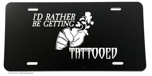 I'd Rather Be Getting Tattooed Tattoo Funny Joke Auto License Plate Cover