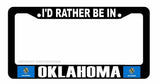 I'd Rather Be In Oklahoma Car Truck Auto License Plate Frame
