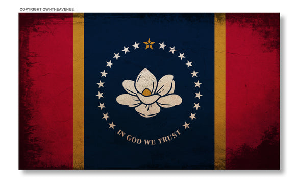 Mississippi Flag Distressed Tattered Rustic Vintage Style Sticker Decal 3.25"