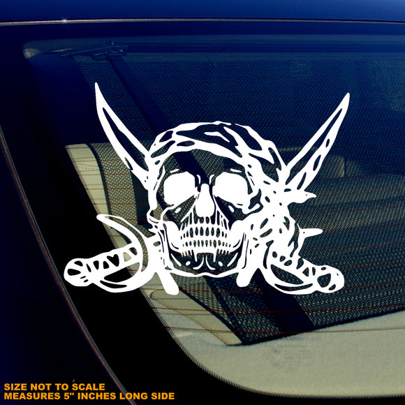 Pirate Decal Skull Rugged Vintage Style Car Truck Laptop Sticker 5" White Vinyl