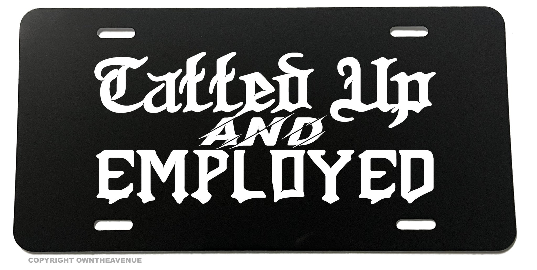 Tatted Up & Employed Funny Joke Tattooed License Plate Cover