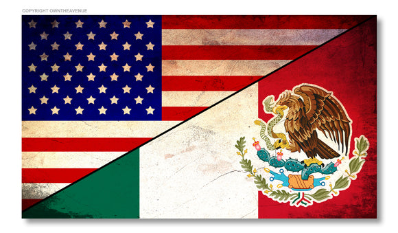USA American Mexican Flag Vintage Style Tattered Vinyl Sticker Decal 3.5"