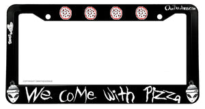 We Come With Pizza Come In Peace Alien Funny Joke License Plate Frame