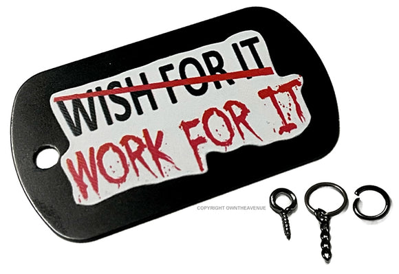 Wish For It Work For It Motivation Gym Keychain Necklace Metal Tag