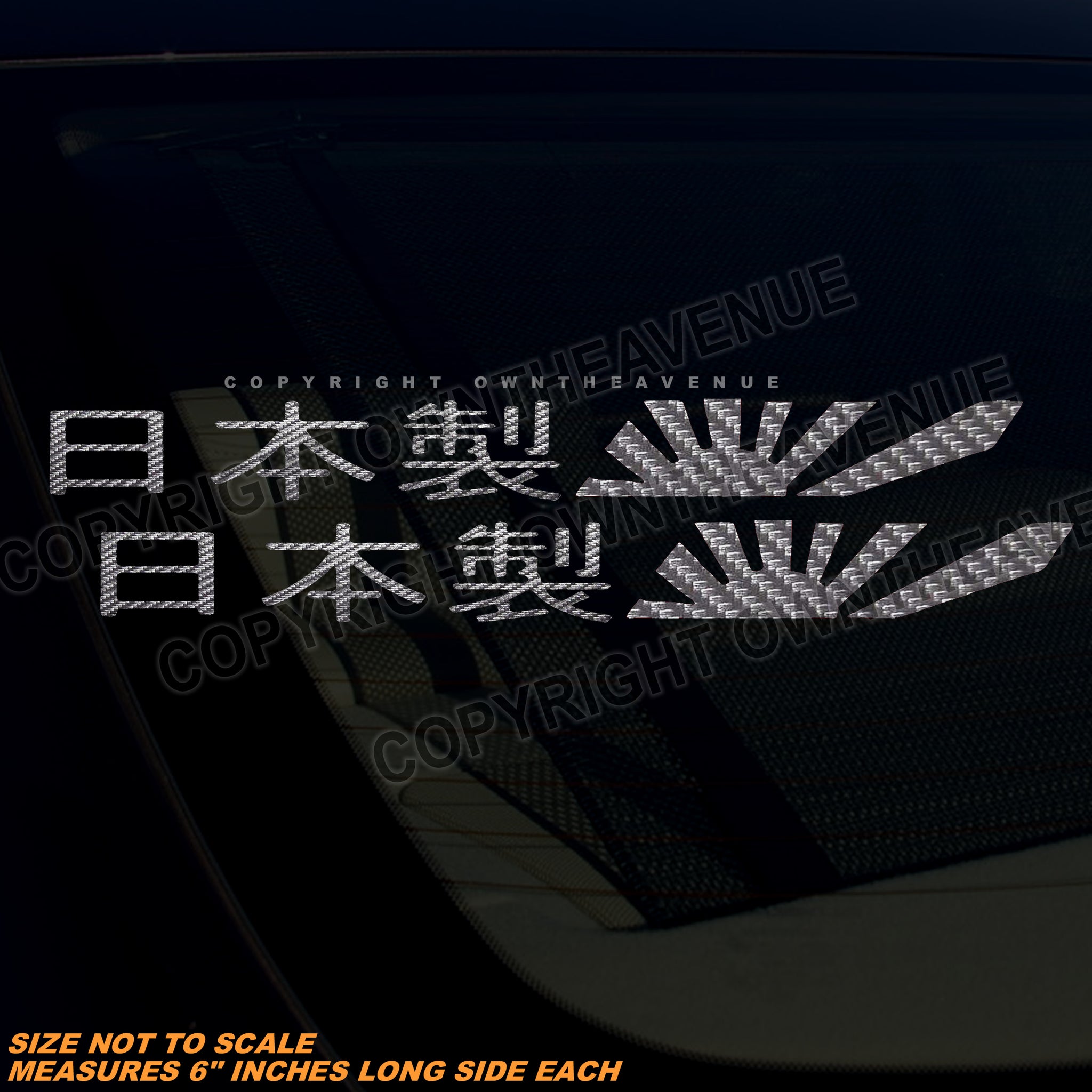 x2 Made In Japan Rising Sun Japanese Kanji JDM Carbon Vinyl Sticker Decals