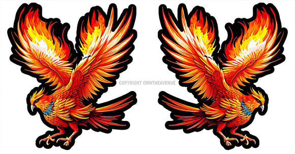 x2 Phoenix Bird Flames Fire Car Truck Window Bumper Laptop Sticker Decals 4"