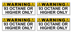 x4 - 93 Octane or Higher Gas Gasoline Fuel Tank Warning Vinyl Sticker Decal 3"